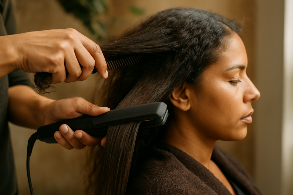 🔄 Le Lissage Indien (ou Botox Capillaire) : Très nourrissant, il repose sur des huiles et des protéines. Il n’utilise pas de chaleur extrême et donne beaucoup de brillance. En revanche, son effet lissant sur les frisottis est moins puissant que le brésilien, et il peut alourdir les cheveux fins.